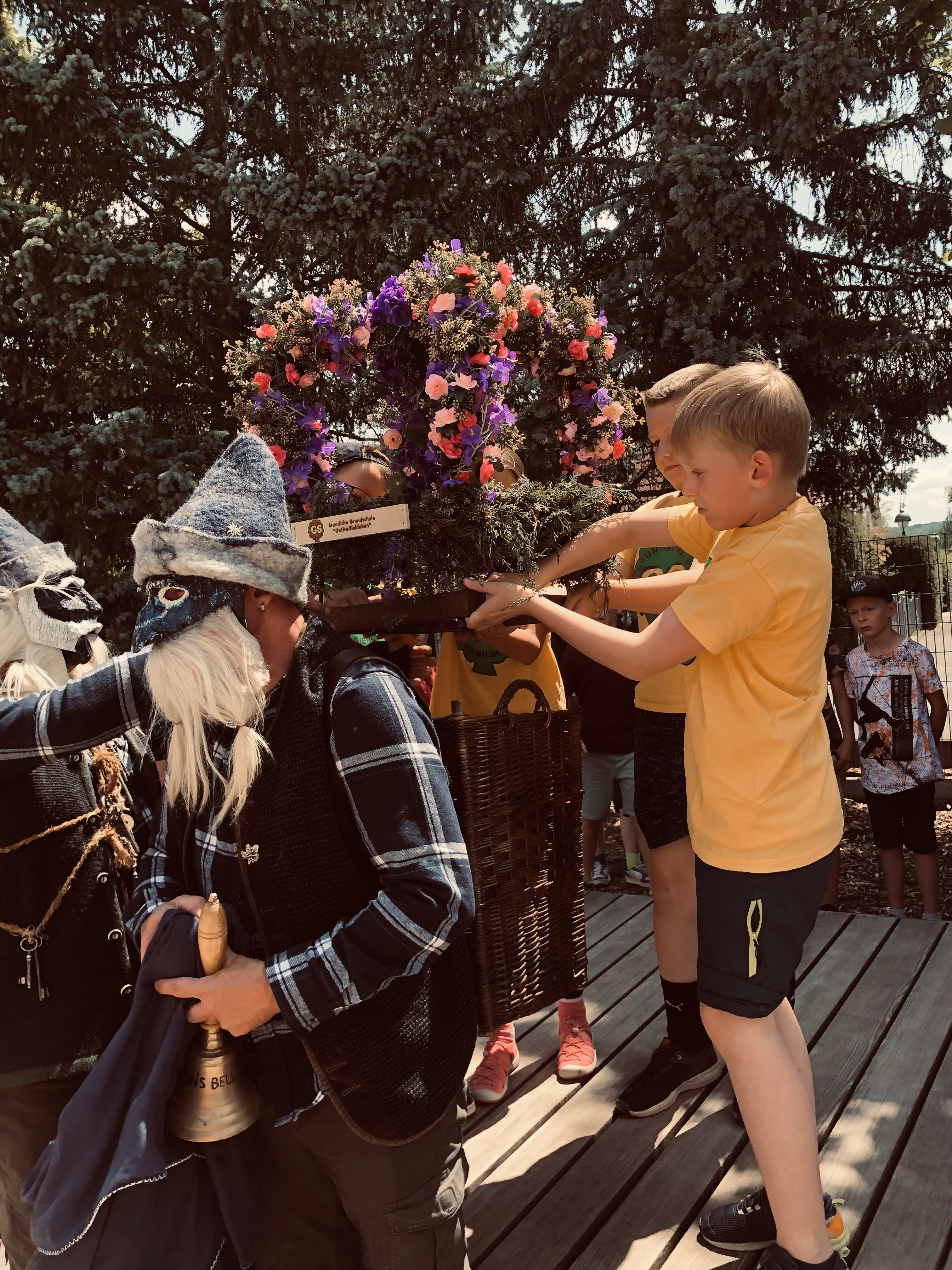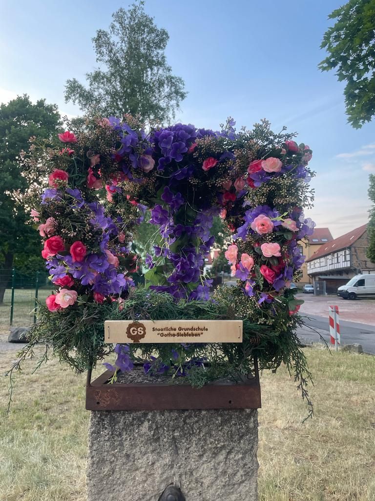 Erstellt: 21. Juni 2023 Sommerkrone auf dem Laufbrunnen in Siebleben Von den Nebelgeistern wurde die von uns gestaltete "Sommerkrone" in der Schule abgeholt Jetzt leuchtet sie sogar im Dunkeln auf dem Brunnen und wird Siebleben den ganzen Sommer erfreuen